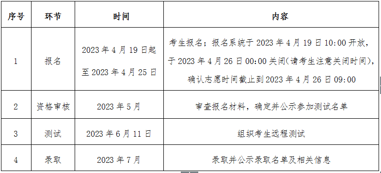 2023年高校专项计划招生工作程序见下表: