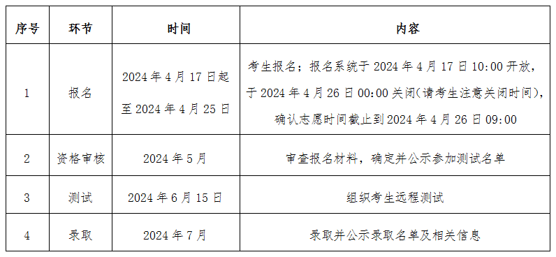 2024年高校专项计划招生工作程序见下表: